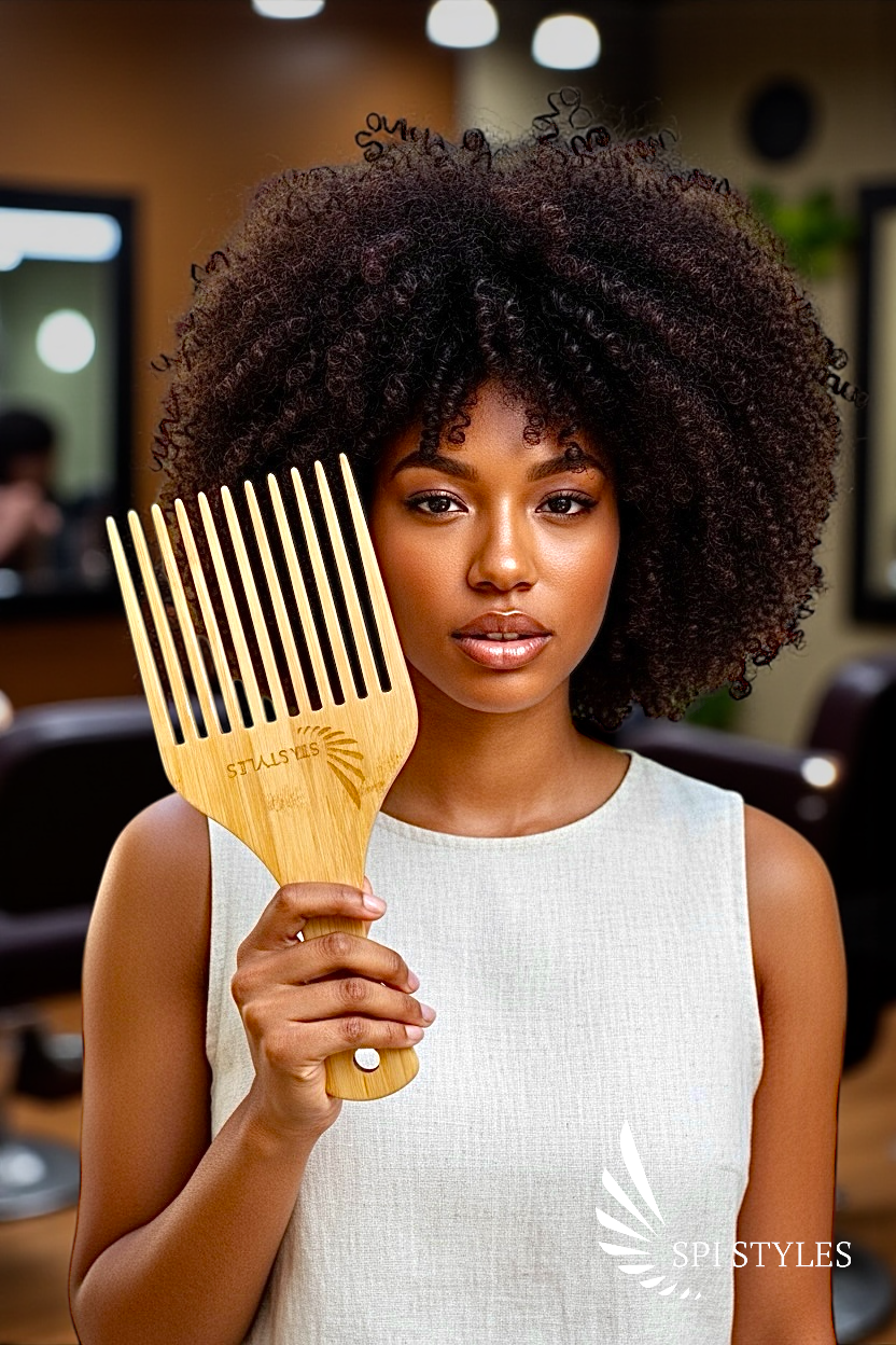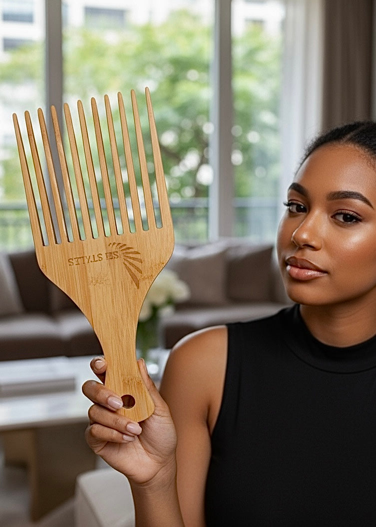 • NEW SPI Styles Natural Wood Jumbo (Extreme Size) - Afro Hair and Beard Pick - Wide Tooth Pick, Scalp Massage Detangling Comb