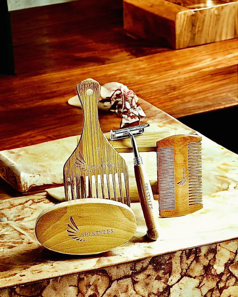 1 X SPI Styles Handmade Natural Wood - Afro Hair and Beard - Wide Tooth Pick, Scalp Massage, Detangling Comb Made of natural wood - static and frizz free, perfect for scalp massage. - Extra wide spaced teeth, great for detangling, hair lifting, volumizing and styling - Reduces frizz, glides through hair easily without pulling or snagging - For all types of hair, especially effective on curly, thick and long tangled hair- Great for Beard Care - Ergonomic handle for comfortable grip, lightweight, perfect size for travel, pocket friendly. Pick Size: 7" Long 3" Wide 0.3" Depth