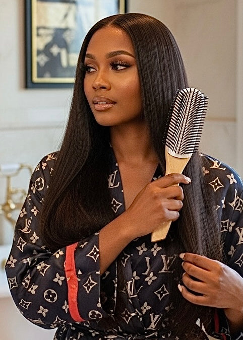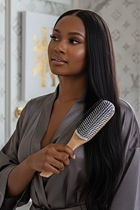 • Natural Wood 9 Row Styler Cushioned Nylon Bristles Brush
