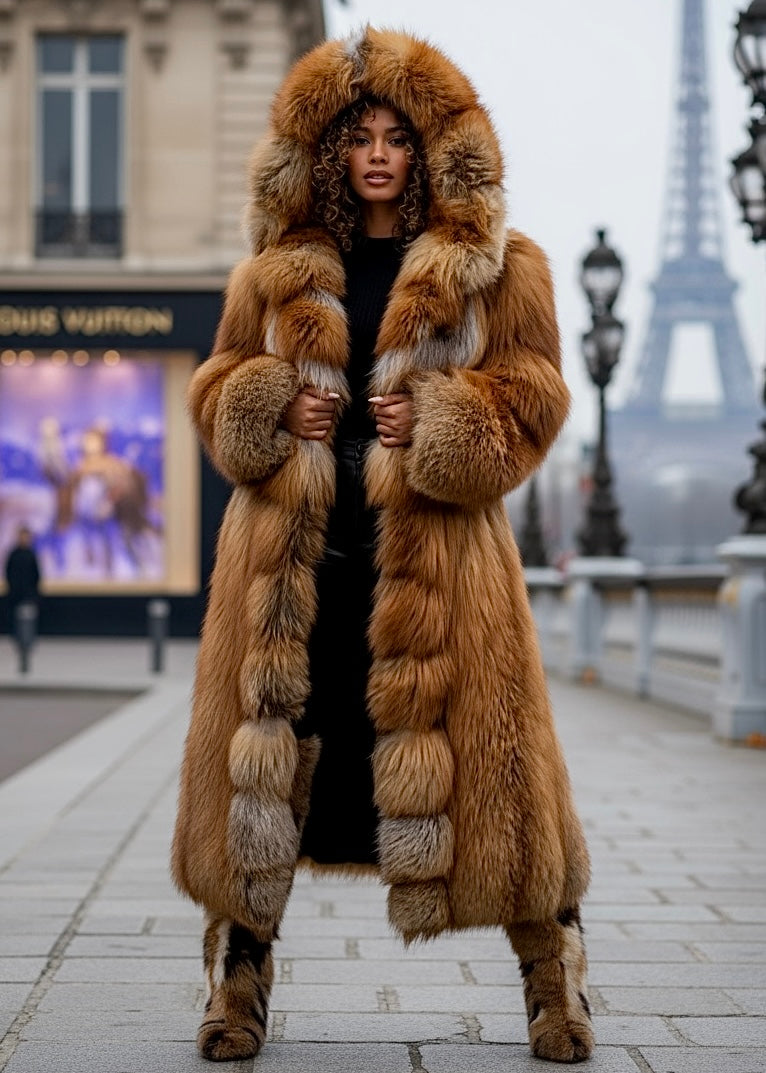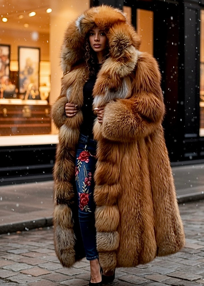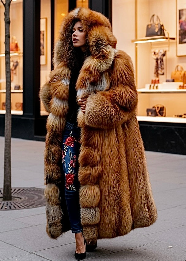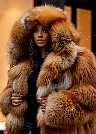 • Genuine Red Fox Fur Coat for, Women With Large Hood, best winter Fashion real Fur Coat Highest Quality.