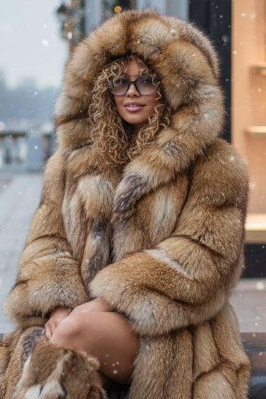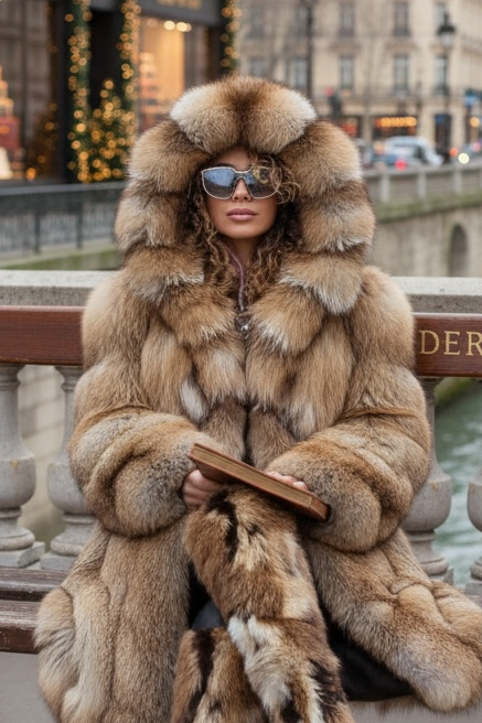 • Luxury Red Fox Fur Hooded Coat